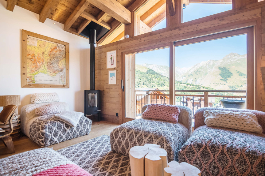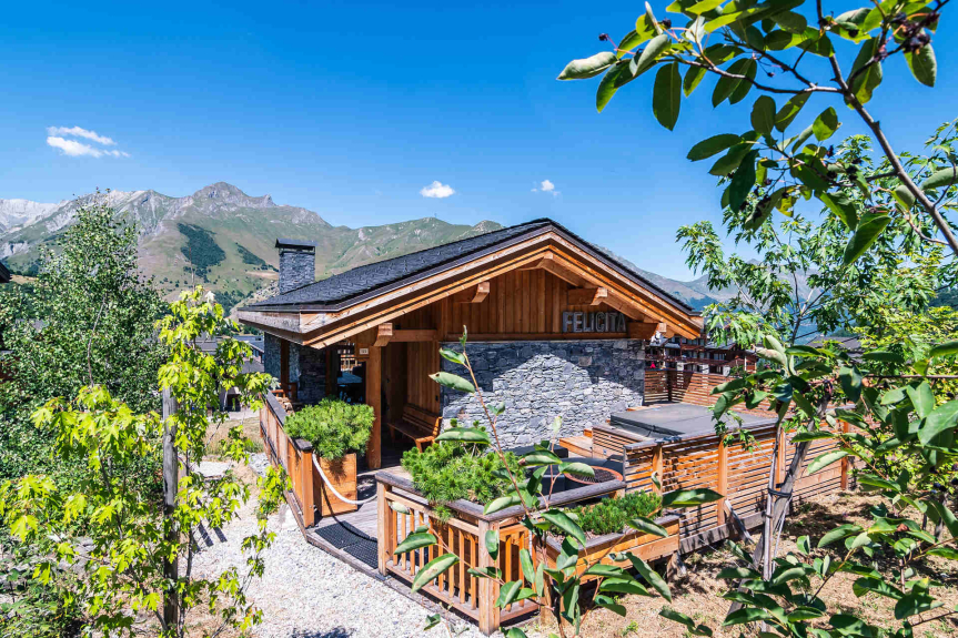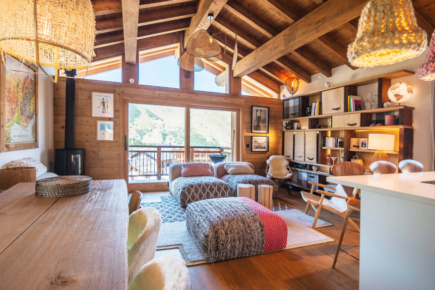 Alle comfort en moderne luxe in een bergomgeving: de houtkachel, een ultramoderne geïntegreerde keuken... en het terras met jacuzzi en vuurkorf.