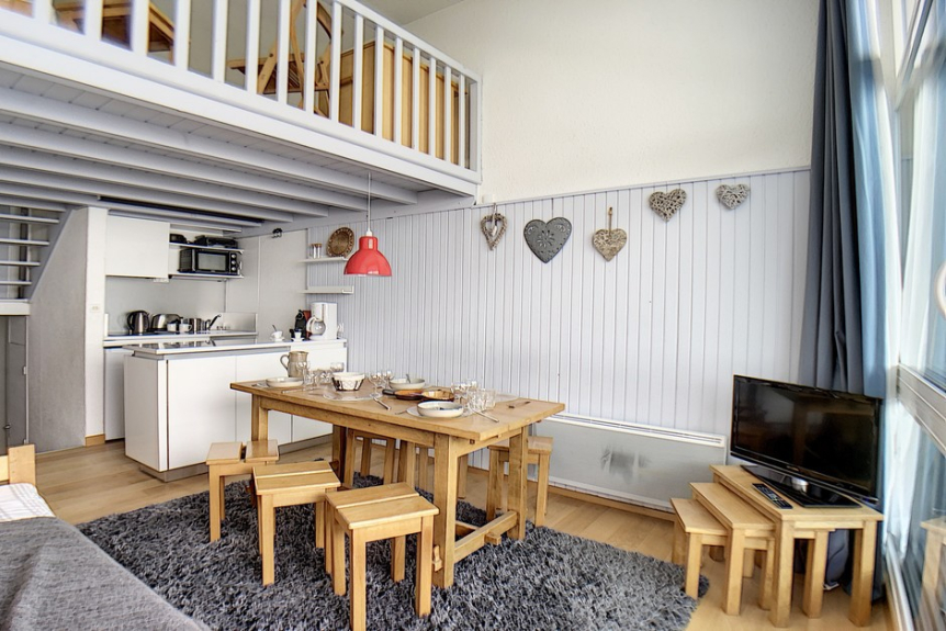 Gerenoveerd appartement van ongeveer 37m² bestaande uit 2 kamers in duplex met een mezzanine voor 6 personen met een balkon op het ZUID-WESTEN gelegen op de 12e verdieping met lift.