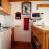 Inbouwkeuken met 2 keramische kookplaten, mini-oven en magnetron, koelkast, afwasmachine, broodrooster, koffiezetapparaat en waterkoker.