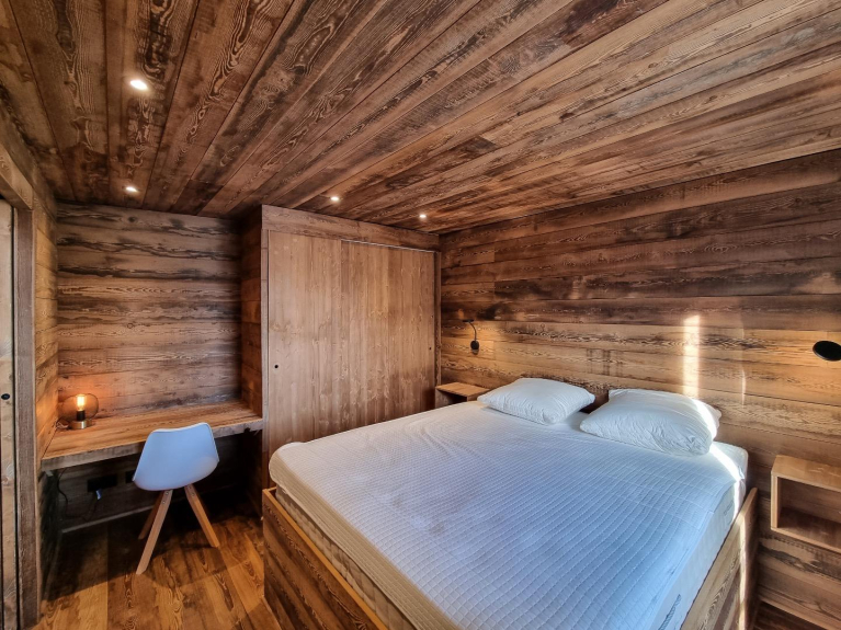 Het heeft een grote woonkamer met open keuken, 3 tweepersoonskamers, een slaapzaal voor 6 personen en een sauna. Het is gemakkelijk bereikbaar vanaf de rotonde van de skipistes, hetzij met de pendelbus die op 20 meter afstand stopt, hetzij door een wandeling van 20 minuten.