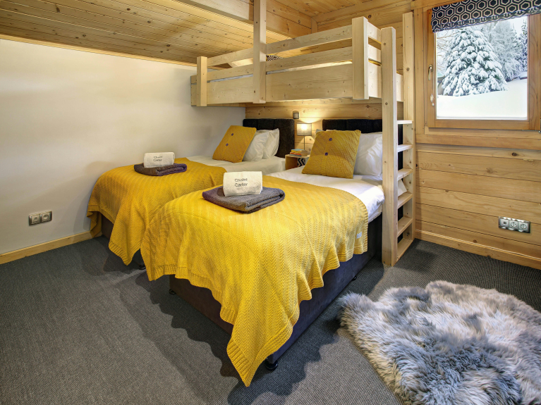 Chalet Carter is volledig opgeknapt door de eigenaren, die het met veel plezier hebben ingericht. Hout, steen en leisteen worden gecombineerd met natuurlijke materialen zoals leer, wol en accessoires van imitatiebont om een warme bergsfeer te creëren.