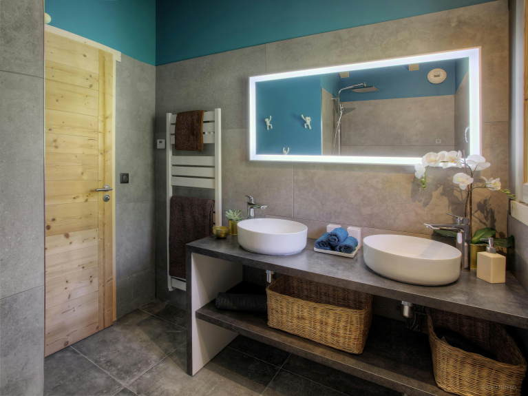 Dit lichte, gloednieuwe chalet is gebouwd in 2019 en biedt plaats aan 11 personen. Het heeft vijf slaapkamers, drie badkamers met douche en is verdeeld over drie verdiepingen.