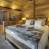 Op de mezzanine met uitzicht op de woonkamer is de prachtige master suite met king-size bed en en-suite badkamer met douche. Merk op dat de douchewanden volledig beglaasd zijn.