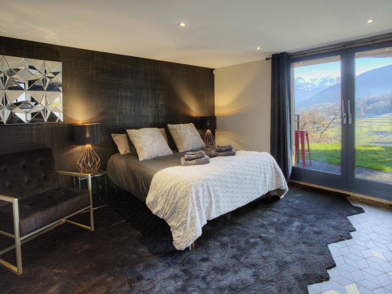 Op de benedenverdieping zijn nog twee slaapkamers toegankelijk. De eerste is een tweepersoonskamer met een extra eenpersoonsbed en de tweede is een grote tweepersoonskamer met en-suite badkamer met douche. Dit niveau omvat nog een doucheruimte in de wellness-ruimte waar u kunt sporten of ontspannen in het stoombad of de jacuzzi. De wijnkelder bevindt zich aan het andere eind van dit niveau; de perfecte plek om een goede fles te delen met vrienden.De omgeving van Saint-Jorioz is een van de vele charmante dorpjes die verspreid liggen rond het meer van Annecy. De omgeving van St. Morioz is een van de vele charmante dorpjes verspreid rond het meer van Annecy, met een breed scala aan winkels en restaurants, evenals een strand en een pad langs het meer.Wilt u meer winkelen en genieten van de restaurants? Ga naar Annecy, de prachtige middeleeuwse en aan het meer gelegen stad. Op een mooie dag kunt u lunchen in een van de restaurants aan het kanaal en kijken naar de voorbijgangers. Ontdek de prachtige designerboetieks, slenter door de gangpaden van de drie wekelijkse voedselmarkten en vind oude spullen op de maandelijkse vlooienmarkt.