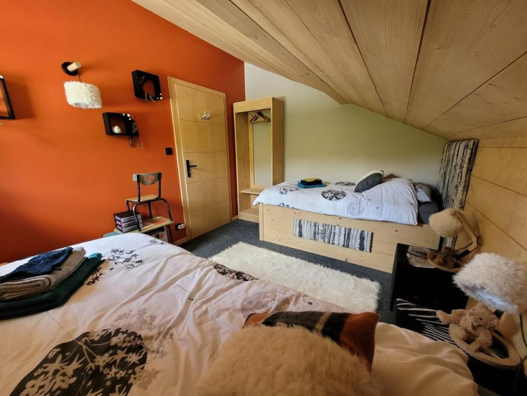 Verdieping: slaapkamer * de marmotten * een bed van 140 x 190 en slaapkamer * de beer * twee bedden van 90 x 190, badkamer, toilet, douche cabine, lounge ontspanning met tafelvoetbal, mini biljart, TV groot scherm, DVD-speler bordspellen en boeken, kinderspeelgoed ...