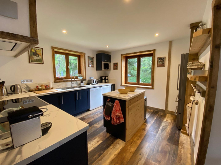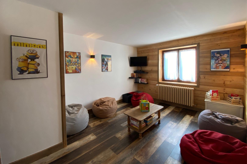 De 3 verdiepingen zijn volledig gerenoveerd: woonkamer 40m², kleine salon 15m², 8/9 slaapkamers. Ontworpen voor sportieve vakanties met familie of vrienden, waar rust en gezelligheid de boventoon voeren.