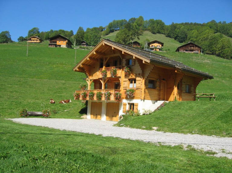 Geniet van uw vakantie met familie of vrienden in de bergen in een comfortabele individuele 4-sterren chalet gelegen in de ongerepte Bouchet vallei, met een panoramisch uitzicht op het Aravis gebergte, op 2,5 km van het centrum van het dorp Grand-Bornand.