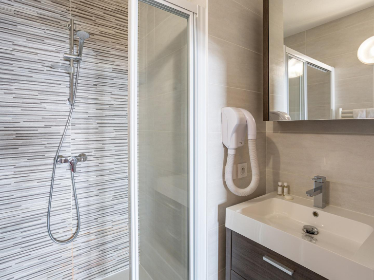Twin, douche en WC (faciliteiten in de kamer met schuifdeur) - geschikt voor een kinderbedje