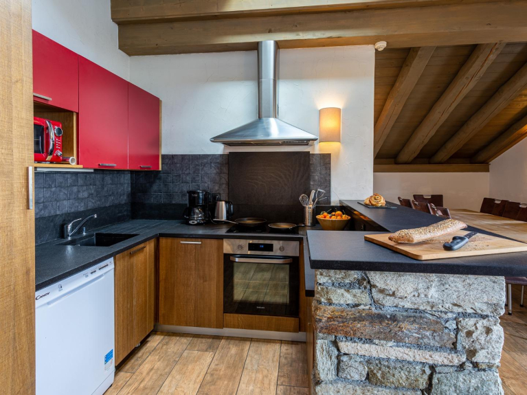 Voor extra gemak hebben alle kamers een eigen badkamer met haardroger. De open woonkamer heeft een eenpersoonsslaapbank, veel comfortabele zachte zitplaatsen voor maximaal 10 personen, een aangesloten tv en toegang tot een balkon. De open keuken-eetkamer is volledig uitgerust met alle apparatuur om heerlijke diners te bereiden en met voldoende zitruimte, zullen verhalen van de skidag rond de eettafel vloeien!
