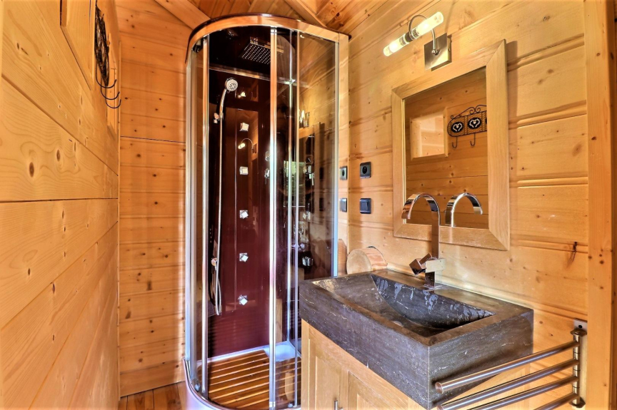 Dit grote chalet van 260 m² biedt u op de begane grond een ingang gewijd aan de terugkeer van het skiën.