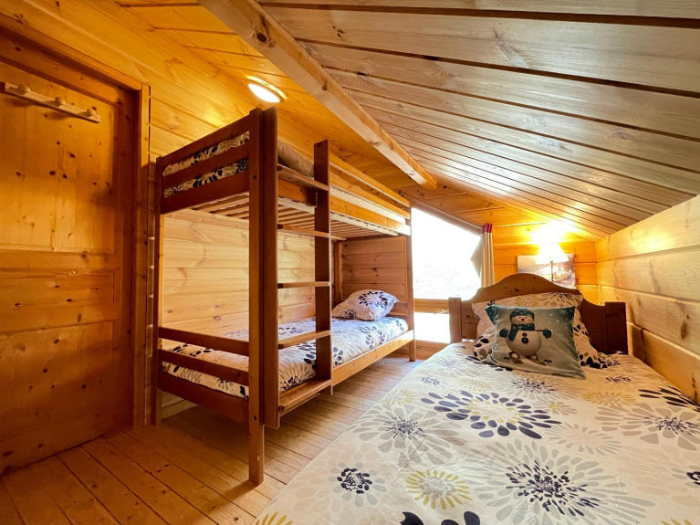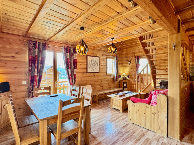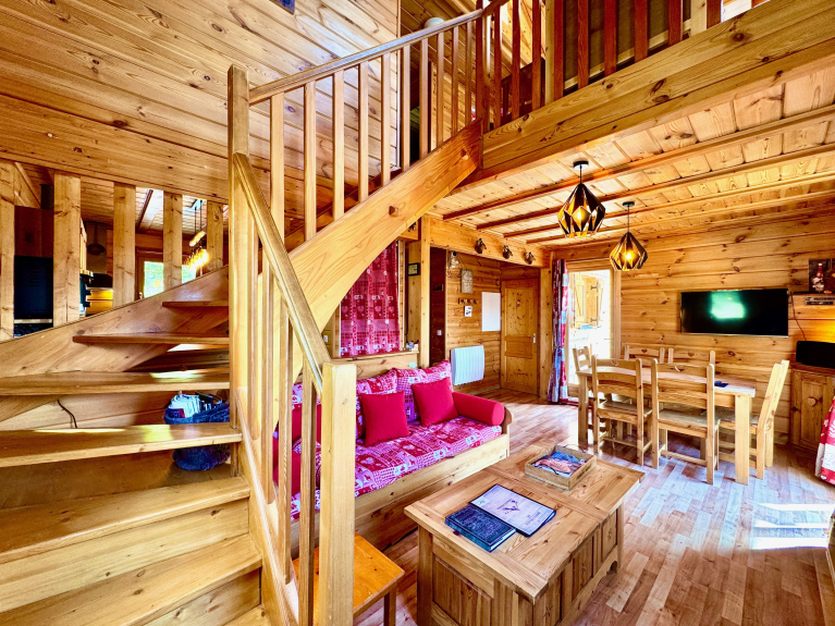 Ons chalet is ideaal voor een verblijf met familie of vrienden. De mezzanine zal de kinderen hun eigen ruimte geven.