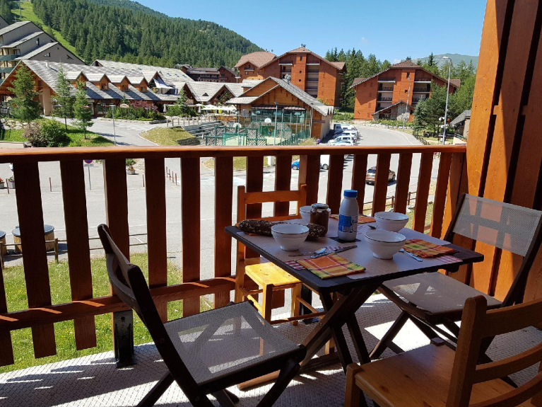 Dit appartement, gelegen in een typische bergresidentie, volledig uitgerust met balkon, biedt huurders een uitzonderlijk uitzicht op het resort van La Joue du Loup en de omliggende bergen.