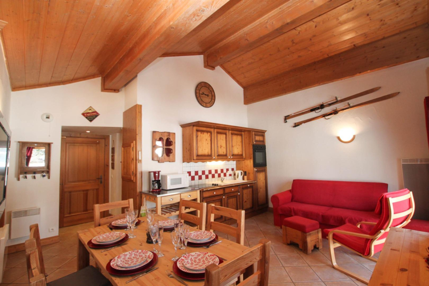Prachtig appartement van 53 m2 in Crest-Voland - Le Cernix, geclassificeerd als 2-sterren gemeubileerd vakantiehuis, op 300 meter van de pistes, bestaande uit 2 slaapkamers en een grote woonkamer. Je zult genieten van de rust en de schoonheid van dit luxe verblijf, ideaal gelegen tussen de dennenbomen, met een prachtig uitzicht op het Aravis-gebergte.