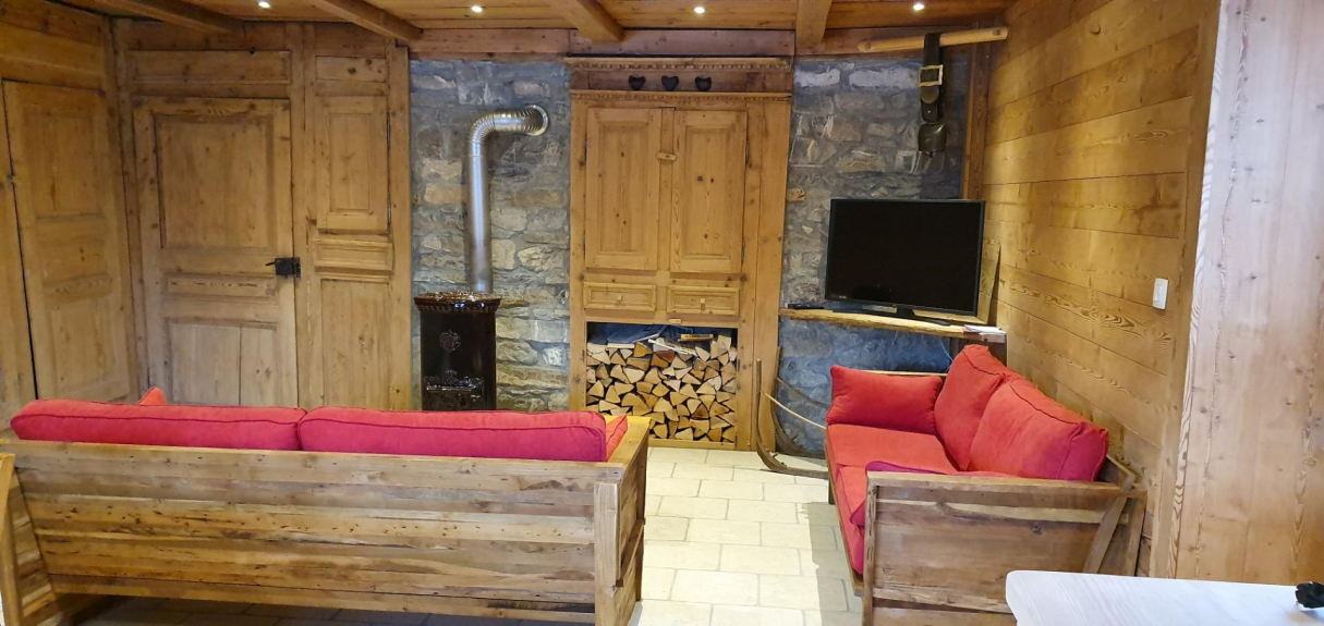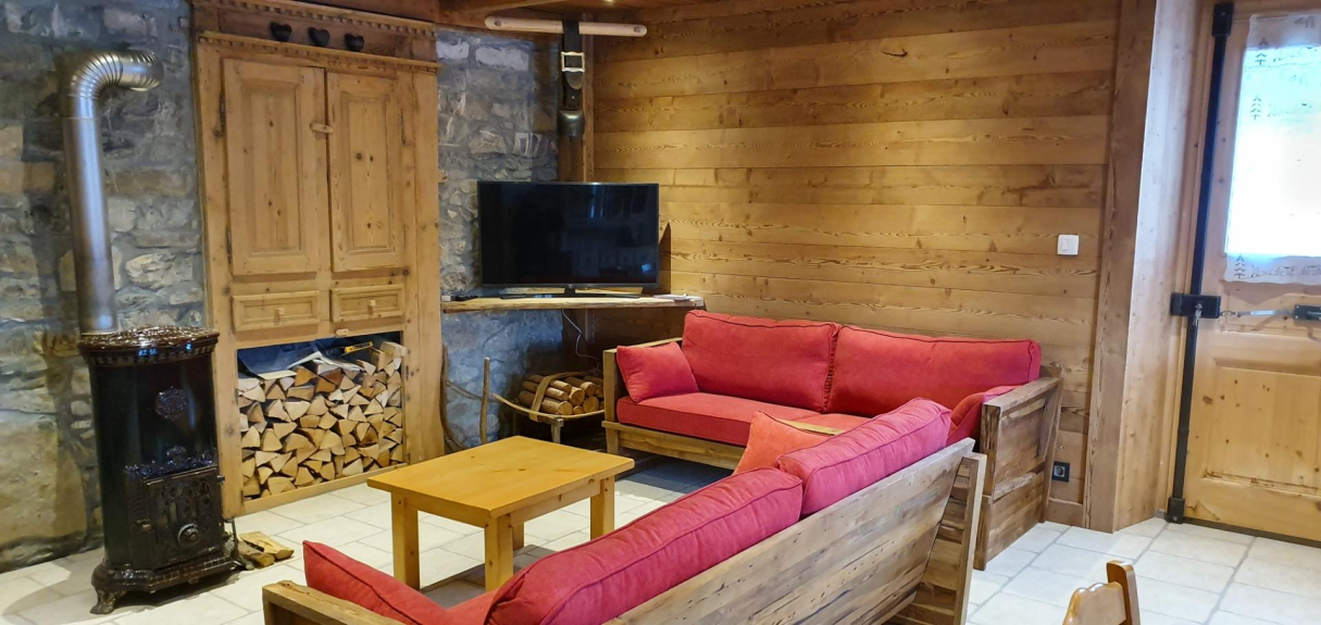 - een ruime woonkamer met twee banken, flatscreen-tv en houtkachel die uitkomt op een volledig uitgeruste keuken (3 inductiekookplaten, vaatwasser, koelkast met vriesvak, waterkoker, koffiezetapparaat, broodrooster, fondue- en raclettezetapparaten).