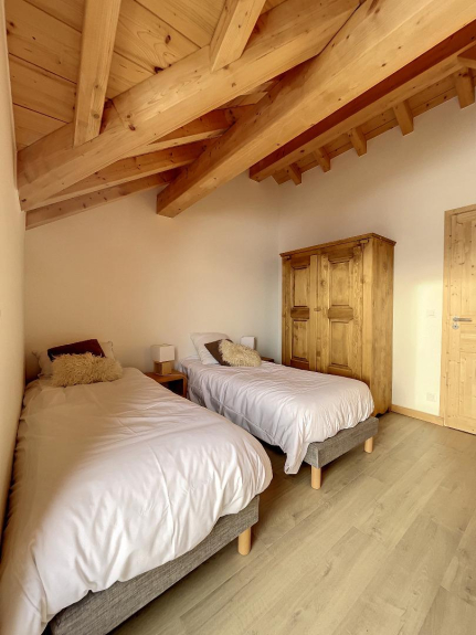 - Slaapkamer n°3 op de 2e verdieping (2 slaapplaatsen) : 2 aparte bedden 80x200 met de mogelijkheid om ze samen te voegen