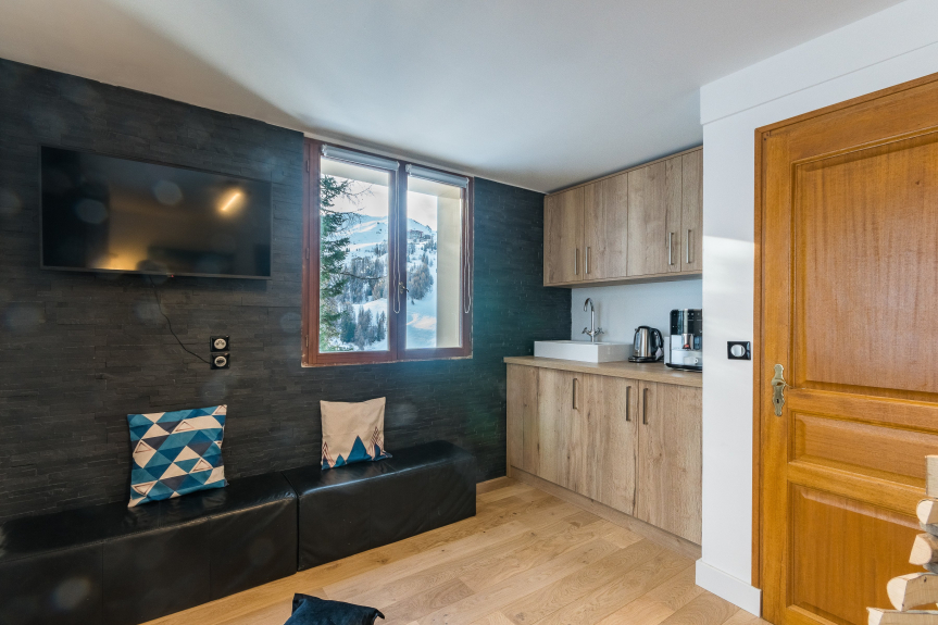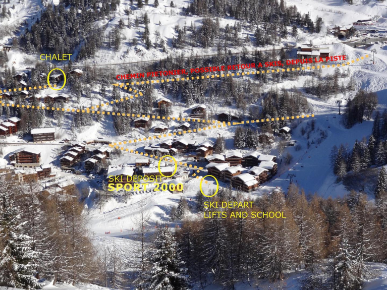Breng een heerlijke vakantie door in de bergen tussen de dennenbomen van La Plagne 1800. Dit is wat het Chalet een plek "apart" maakt! Heel anders dan de gebouwen in het resort... Het chalet ligt op de helling van Plagne 1800, op een hoogte van ongeveer 1900m, 500m van het centrum van Plagne en 250m van de pistes en de liften. Wij bieden ook de mogelijkheid om ski's en schoenen op te slaan aan de voet van de piste via onze partner tegen een voordeeltarief van 35 euro/week voor 4 personen, en de huur van ski's en schoenen geniet een korting van 50% indien vooraf gereserveerd en ook ter plaatse voor de huurders van het chalet.