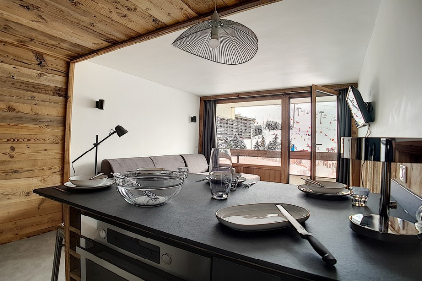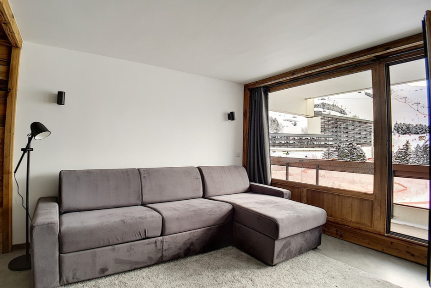 2-kamerappartement: 36 m² voor 5 personen. gelegen boven het winkelcentrum, op de 2e verdieping van een ski-in/ski out residentie, dicht bij het vertrek van de skilift en het ESF vertrek. Het appartement heeft een groot balkon op het zuiden.