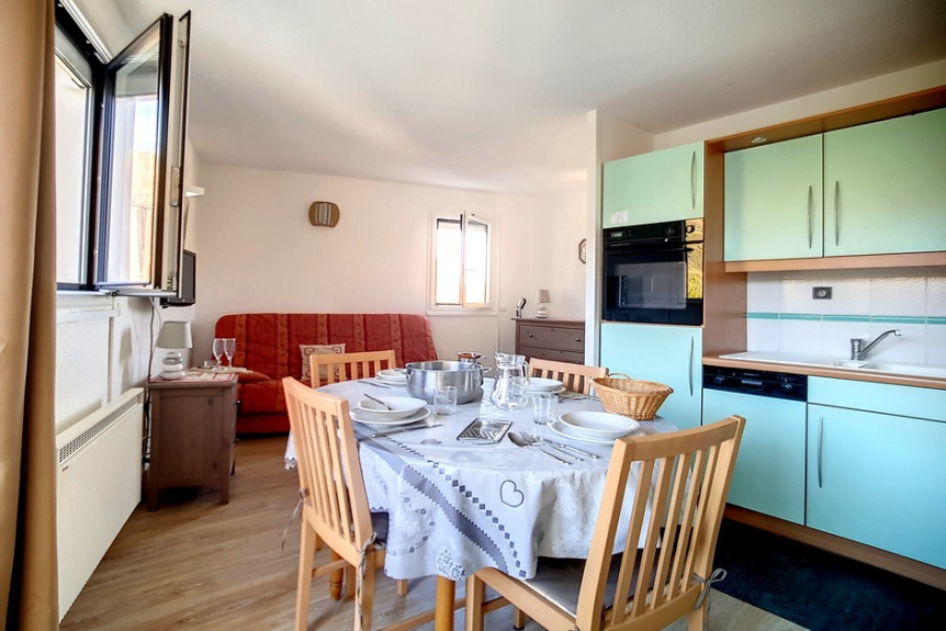 Het is gelegen op de 2e verdieping met een balkon op het zuidwesten dat uitzicht biedt op de Place des Bouquetins en een mooie zonnige middag. Voor uw comfort, uitgerust met elektrische rolluiken.