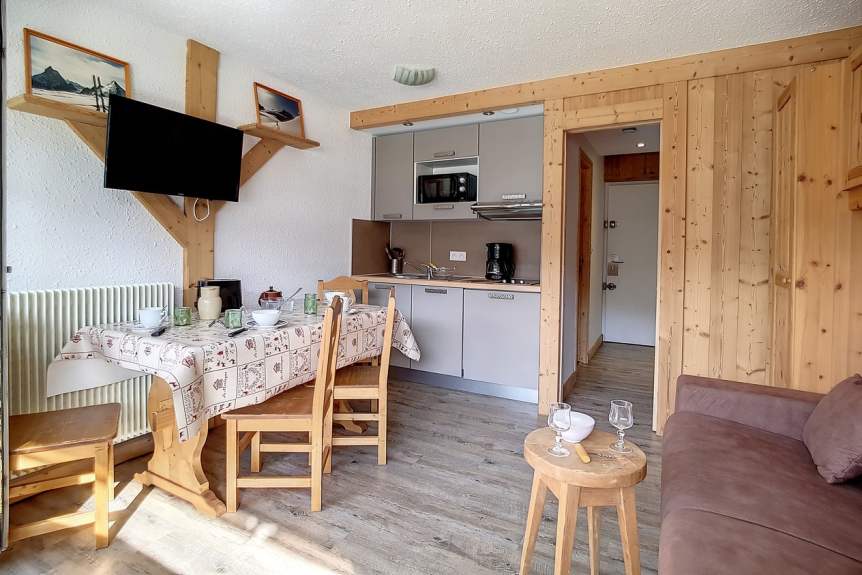 Mooie studio volledig gerenoveerd in 2015, met een oppervlakte van 22m² voor 4 personen. Gelegen op de begane grond van een residentie dicht bij de skiliften en het vertrekpunt van de ESF, heeft het een balkon op het zuiden.