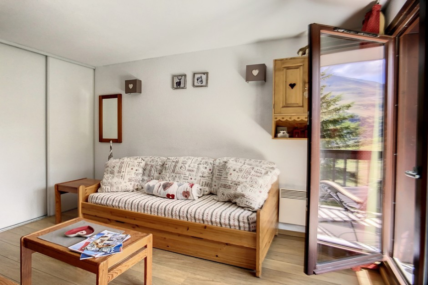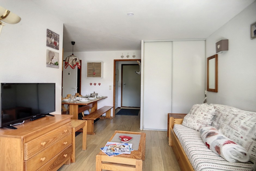 2 kamer appartement met cabine, 30 m² voor 6 personen. Het appartement is gelegen op de 1e verdieping met een groot balkon op het zuiden.