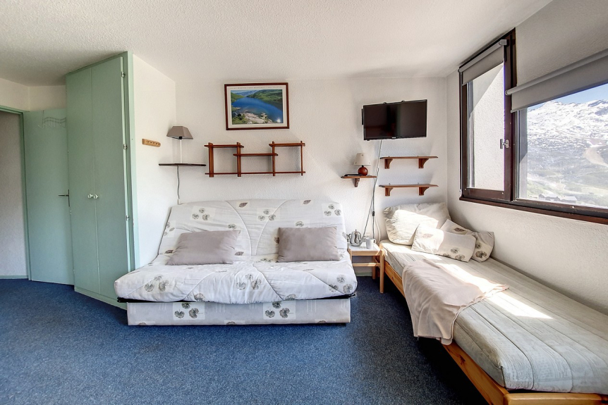 Gratis parkeren aan de voet van het gebouw. Winkels en skischool in de buurt. De pistes liggen op 250 meter afstand.
