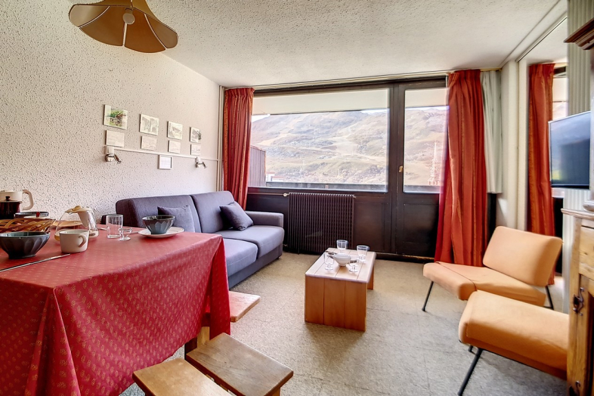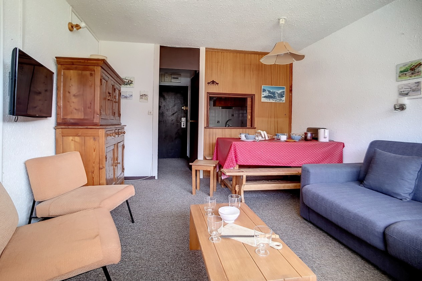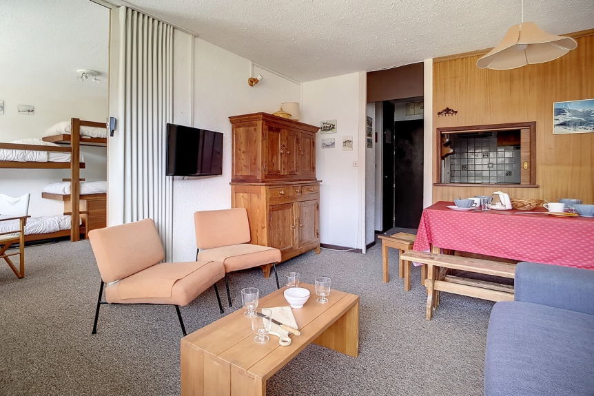 Dit is een 2 kamer appartement met 1 slaapkamer met een totale oppervlakte van 42m² voor 6 personen. Het is gelegen op de 6e verdieping van een ski-in/ski out residentie, dicht bij de skiliften en het ESF vertrekpunt en heeft een balkon op het zuiden.