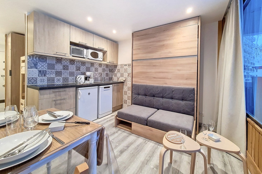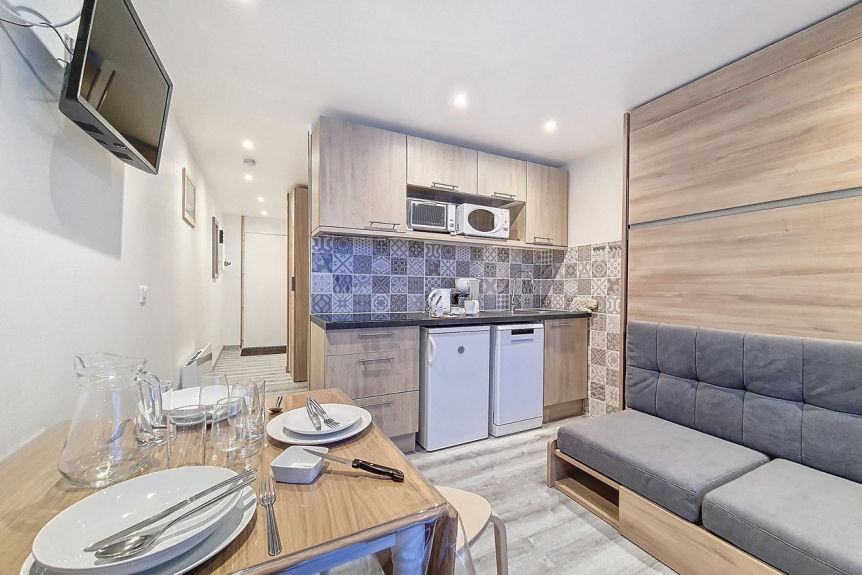 Studio van 24 m² voor 4 personen. Het is gelegen op de 3e verdieping van een residentie met lift en heeft een balkon op het zuiden.