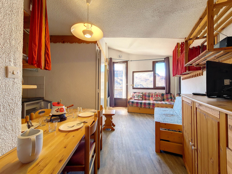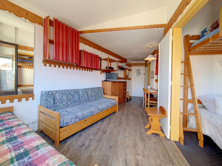 Tweekamerappartement met verplaatsbare tussenwand van 26 m² voor 4 personen. Het is gelegen op de 7e verdieping met lift en heeft een balkon op het zuiden / oosten.