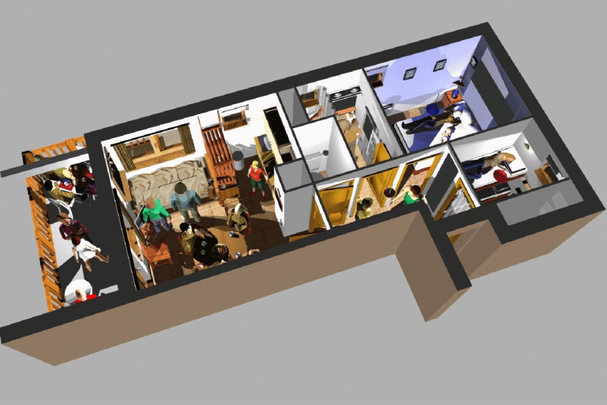 2 HD-televisies, 1 aangesloten , DVD-speler, HI-FI micro-systeem, FM-radio doucheruimte.