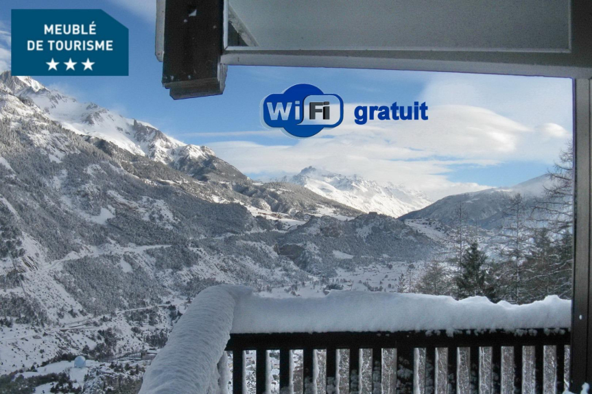 Huur appartement 2P/cabin - 4/6 personen in een Savoyard chalet met een groot balkon met uitzicht op het Vanoise National Park en op een steenworp afstand van Italië (Fréjus Tunnel).