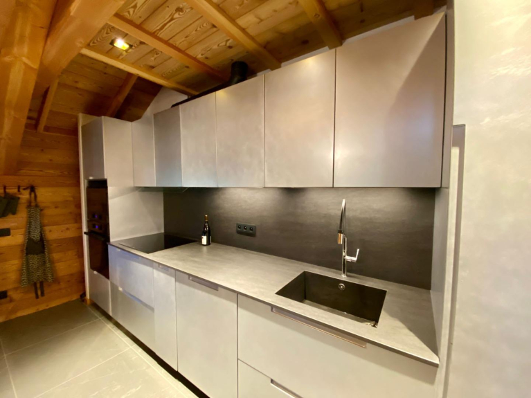 Luxe inbouwkeuken: koelkast, inductiekookplaat, oven, vaatwasser, magnetron, filterkoffiezetapparaat, Nespresso-apparaat, waterkoker... alles staat tot uw beschikking.