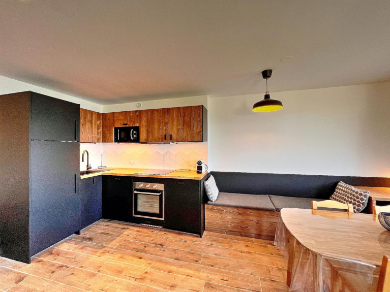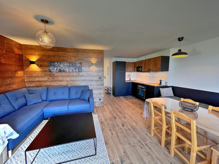 Dit onlangs gerenoveerde appartement, met zijn ruime en comfortabele woonkamer en open keuken, ligt op minder dan 50 meter van de eerste skiliften en het centrum van het dorp Vallandry.