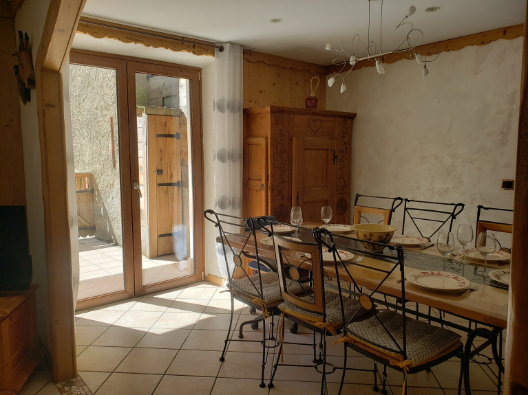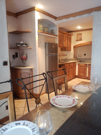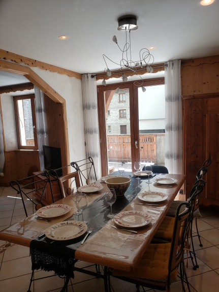 Appartement 8P groot comfort in een huis in het centrum van het dorp, gratis shuttle stop om naar de voet van de pistes te gaan aan de onderkant van het huis of 10 minuten lopen van de 1e skilift. 90m2 duplex met keuken open naar de woonkamer die uitkomt op terras 1wc en op de 1e verdieping 3 slaapkamers die uitkomen op groot balkon 1 badkamer met douche en wc en 1 badkamer met bad veel bergruimte. Veel activiteiten in de winter; alpine skiën wandelen sneeuwschoenwandelen langlaufen mountainbiken op sneeuw gemeentelijk zwembad ijsbaan ... en zomer wandelen klimmen via ferrata mountainbiken racefiets met de pas van de iseran en de pas van mt cenis met zijn dam en 30 minuten met de auto van Italië meer zwemmen 15 minuten met de auto