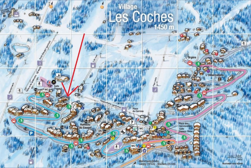 Het resort Montchavin-La Plagne (= Les Coches) ligt in het hart van Paradiski, in het gebied La Plagne net onder de Vanoise Express gondel naar Les Arcs. De residentie Le Carrousel is "skiën aan je voeten", bij het vertrek van de Lac Noir kabelbaan.