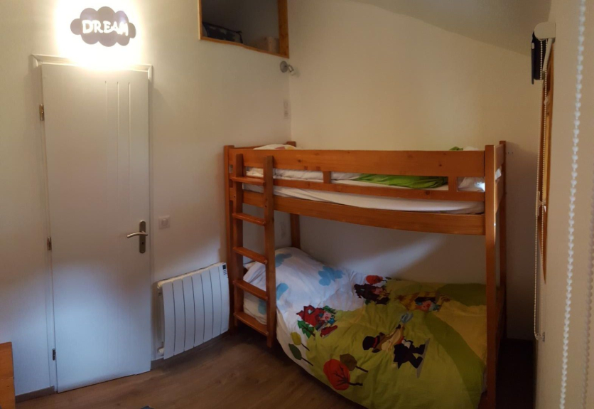 - een slaapzaal onder de helling, toegankelijk via de vorige kamer. Het heeft een 80x190 matras, 2 90*190 matrassen en een 140x190 matras.