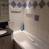 Badkamer met bad, douche en toilet.