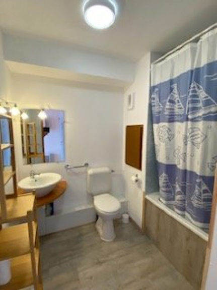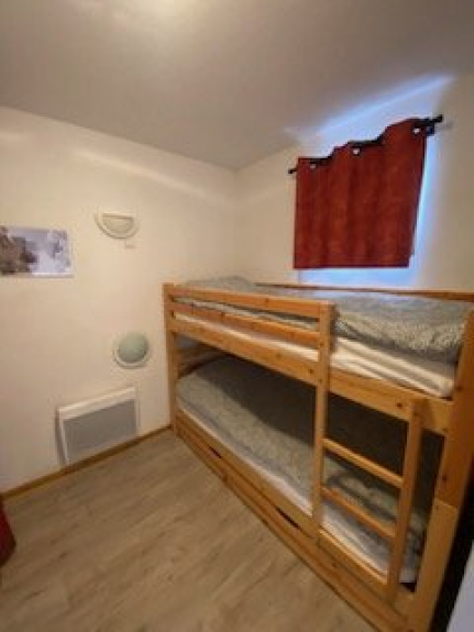 6 slaapplaatsen met 1 kamer met tweepersoonsbed en kledingkast, 1 kamer met 2 stapelbedden en kledingkast, gang met stapelbed, doucheruimte, wc, woonkamer-keuken.