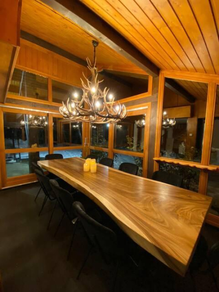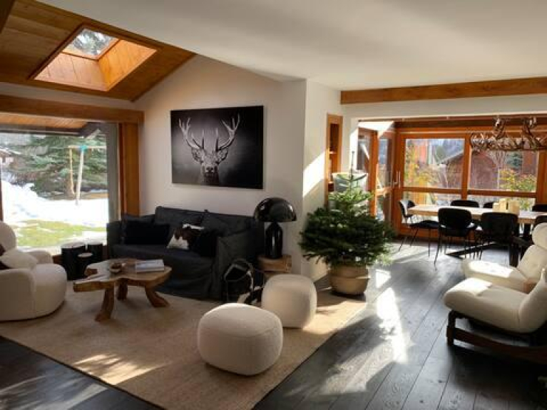 Salon/eetkamer, volledig uitgeruste keuken, skiruimte en speelkamer.
