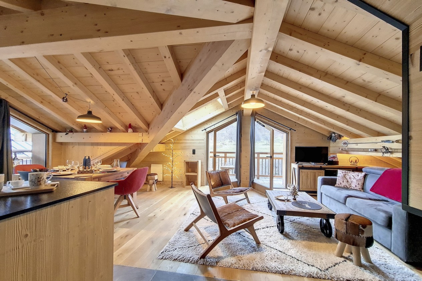Chalet Neuf : Chalet YDILIA, op 400m van het begin van de Bettex stoeltjeslift, biedt je een vakantie in discrete luxe. Ontspan in de sauna. Geniet van het adembenemende uitzicht vanaf het terras op het zuidwesten.