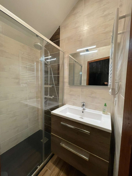 2 slaapkamers met bedden van 160 cm en badkamer met douche.