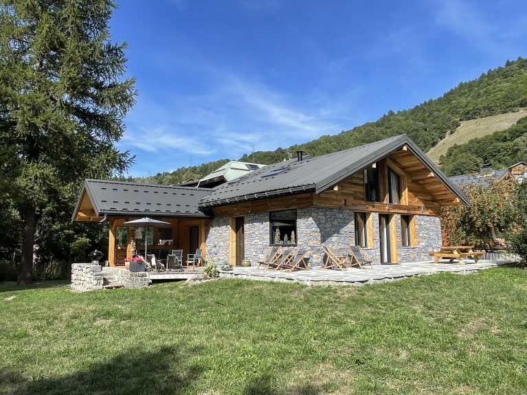 Dit 4-sterren chalet van 120 m² met 10 slaapplaatsen op een vlak, volledig gerenoveerd terrein van 1300 m² met 2 grote terrassen (waarvan 1 overdekt), omzoomd door een beekje, ligt in een rustige omgeving dicht bij het centrum en de skiliften. In het seizoen rijdt er een gratis pendelbus voor het chalet langs.