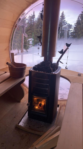 1 Scandinavische sauna met een transparante bubbel met uitzicht op de piste