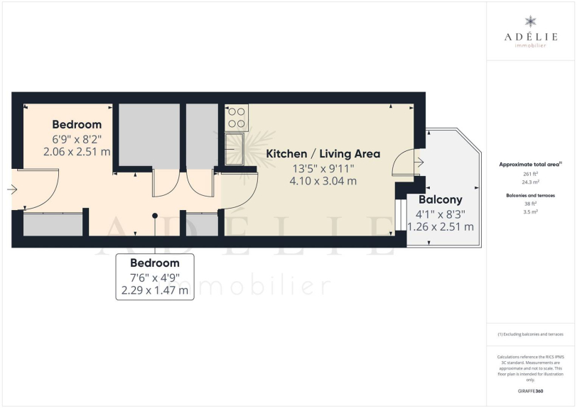 BQA017: 26 m2 STUDIO CABIN voor 6 personen, indeling 2*, op de 1e verdieping.