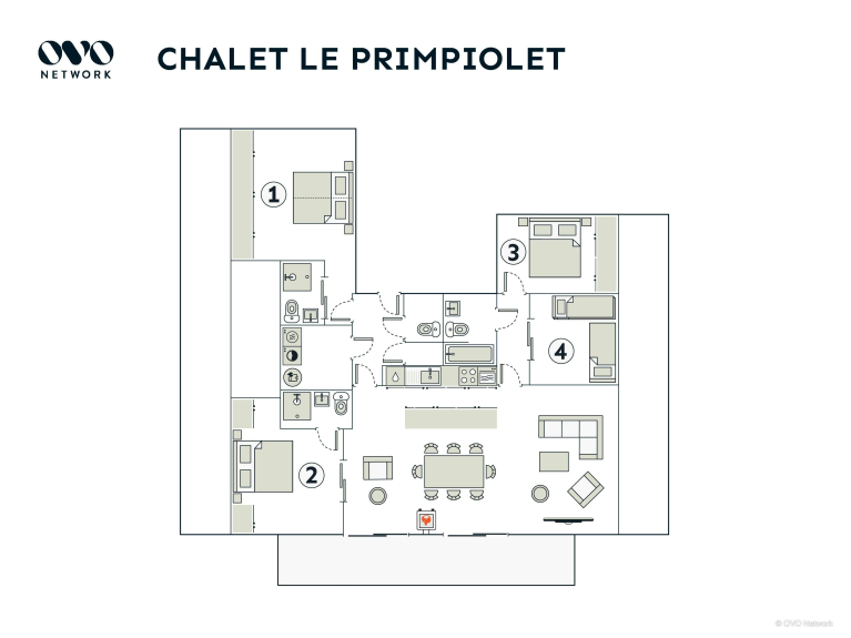 Le Primpiolet is een modern appartement voor 9 personen met 4 slaapkamers en 3 badkamers. Het appartement beslaat de hele derde verdieping van het gebouw en heeft een lift, waardoor het toegankelijk is voor mensen met beperkte mobiliteit.