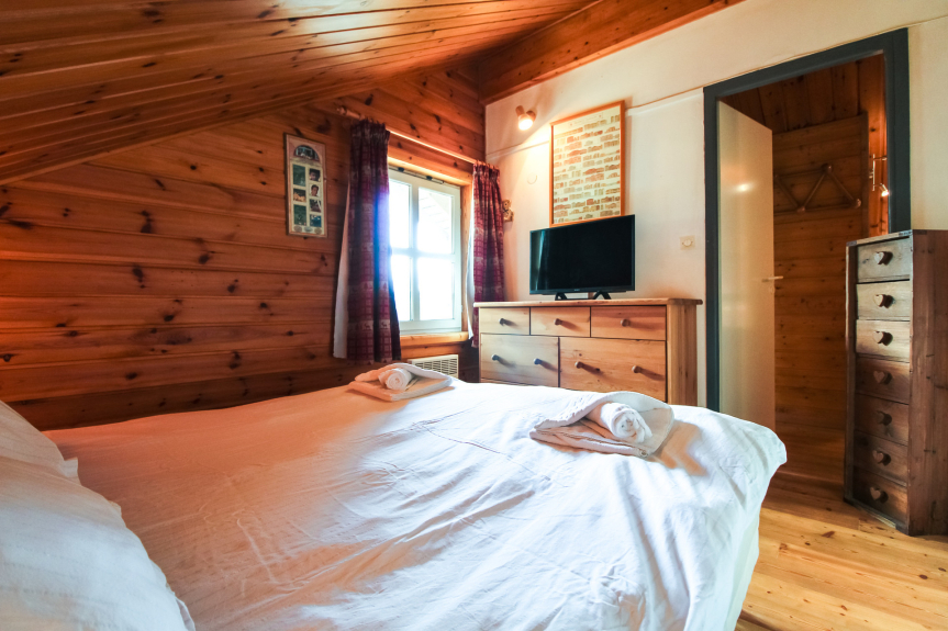- Slaapkamer 1: 1 tweepersoonsbed en televisie