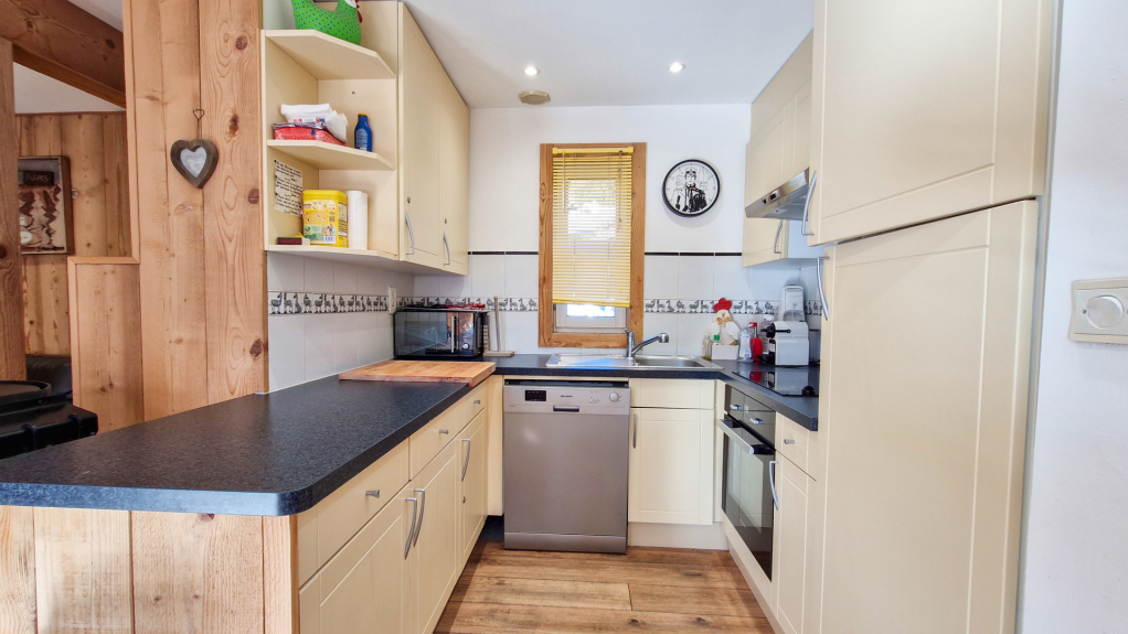 - Open keuken met keramische kookplaat, vriezer, oven, magnetron en vaatwasser