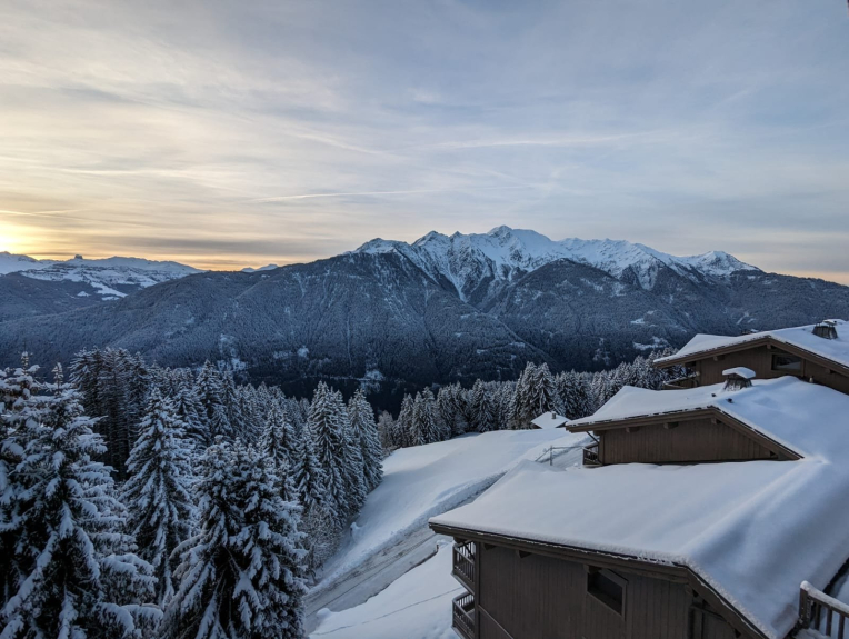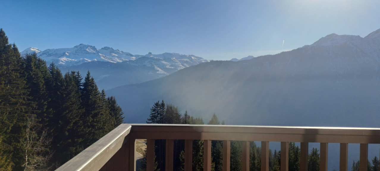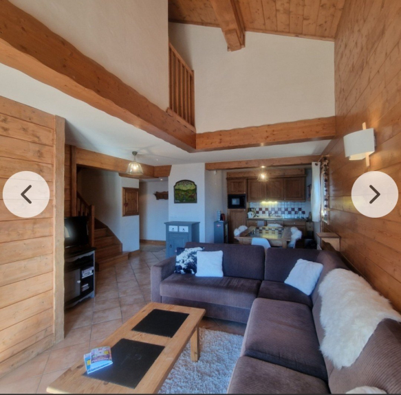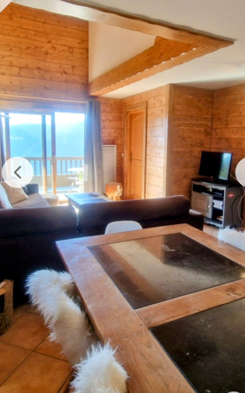 In een recent luxe houten chalet van MGM, duplex-appartement van 80 m2, smaakvol ingericht, Savoyaards meubilair, balkon zonder inkijk, op het zuiden, met adembenemend uitzicht op de Beaufortain (180°).