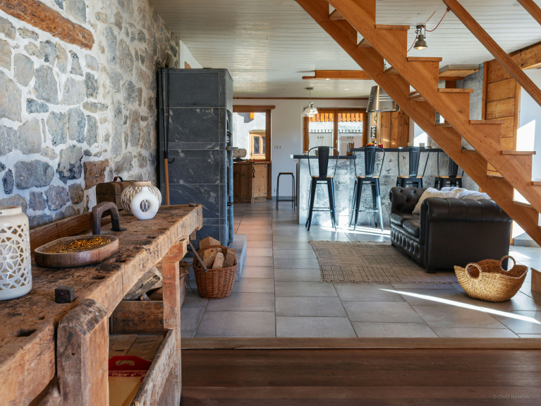Zorgvuldige renovatie van deze voormalige boerderij heeft gezorgd voor de perfecte mix van traditionele charme en modern comfort. De vele ramen laten alle kamers baden in natuurlijk licht en bieden een weelderig uitzicht op de omliggende bergen.