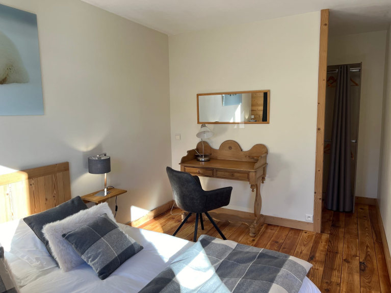 Chalet van 74 m2, ideaal gelegen op de Mont d'Arbois met PANORAMISCH UITZICHT op de Mont-Joly en het massief van Rochebrune. Autovrije toegang tot de skipistes. Bushalte op 200 m afstand. We hebben het dit jaar gerenoveerd, met als doel een warme, gastvrije plek te creëren waar het hele gezin elkaar kan ontmoeten.