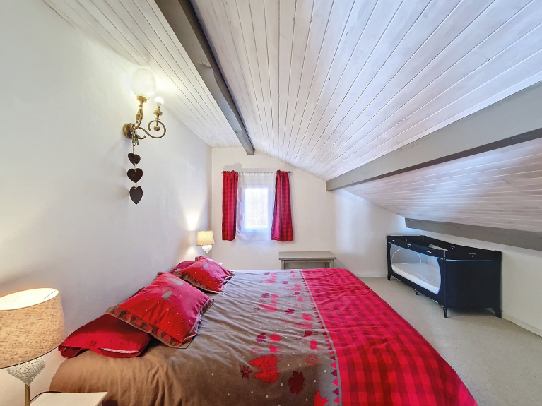 3 slaapkamers, 1 mezzanine, ingerichte keuken, salon, eetkamer, douchekamer met WC en 1 badkamer met bad en WC. Terras en parkeerplaats.